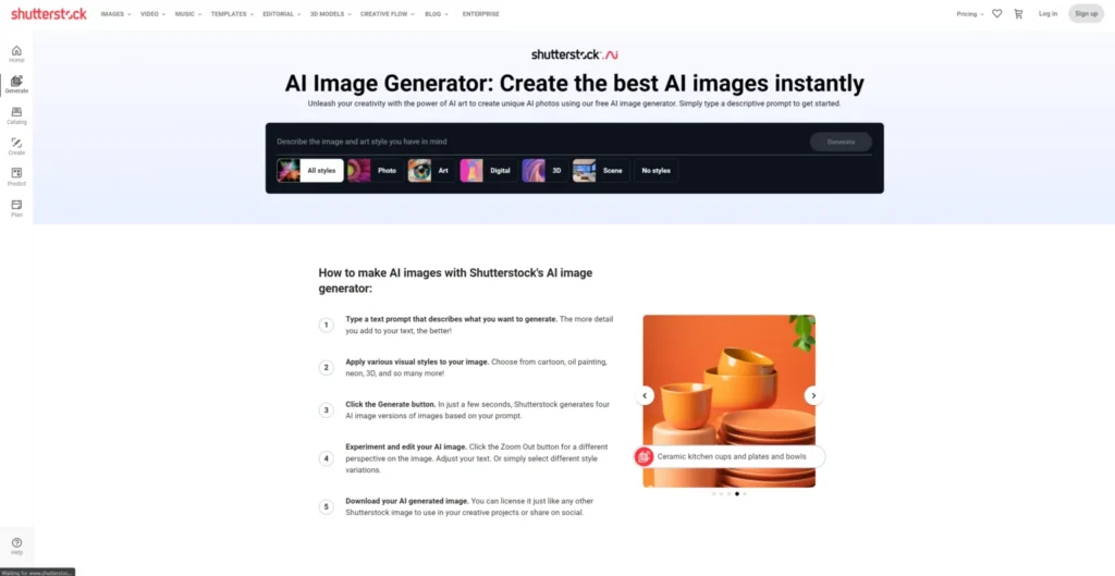 A highly sought-after platform for royalty-free art. This AI-powered tool from Shutterstock offers a straightforward method to produce images for both personal and commercial purposes. Initially equipped with a predefined set of image styles, a mere click on any of them unlocks a plethora of additional options, empowering users to finely tailor their creative visions. While leveraging Shutterstock’s extensive library, the AI tool does take relatively longer to generate images compared to other tools featured on our list, which might be a drawback if time is of the essence for batch image creation in your project.