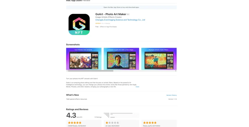 GoArt’s standout feature? You can turn your AI creations into NFT digital artwork! With Mint NFT, a built-in mini-app, encrypt and trade your NFT artwork on OpenSea for financial rewards. It’s time to unleash your creativity and turn your imagination into digital masterpieces with GoArt – the art generator app that’s got it all!